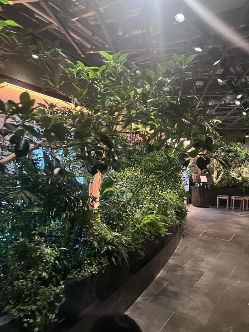 緑がいっぱい。植栽の小道を抜けて窓際へ。